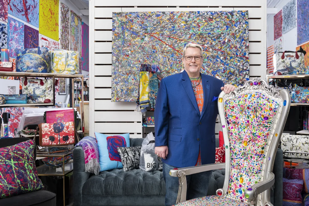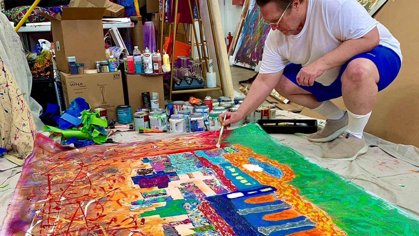 It wasn’t until 2010, after having suffered decades of emotional abuse and being marginalized for my sexual orientation, that I found myself on the brink of an emotional precipice. It was in that moment that helplessness turned to strength and the artist Jumper Maybach stepped forward and became instrumental and vital to my healing process. Jumper gave me the confidence and power to manifest the artist I never knew I could be. I used this persona as a way to find strength and creativity behind clown makeup. But over the recent years, I’ve evolved – I no longer paint or make appearances in clown makeup, I’m speaking and creating from a healed place. My hope is that the Jumper Maybach brand will inspire an awakening within everyone. My art is a constant evolution of color and bold mixing of techniques that results in surprising and compelling abstract art.